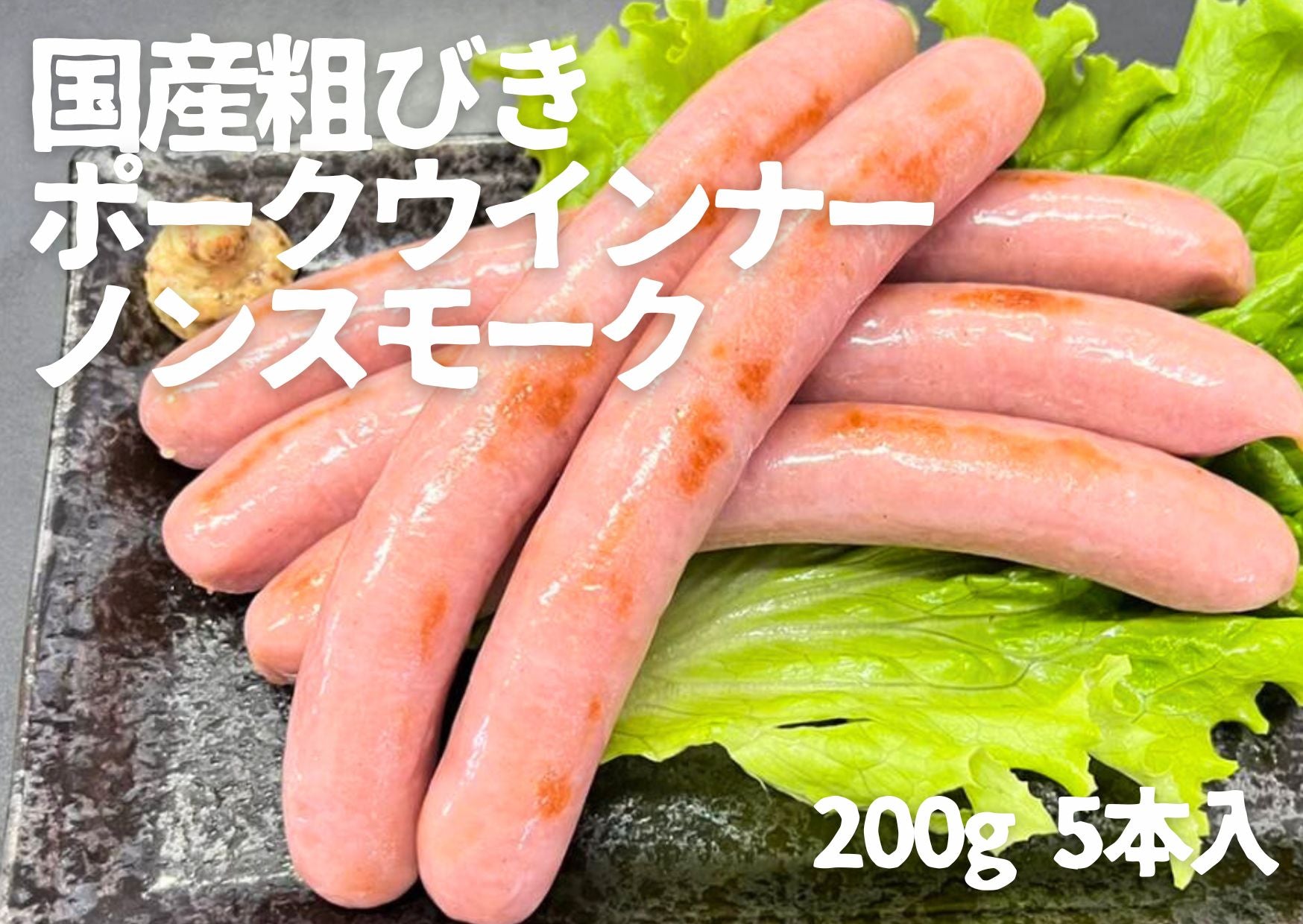 国産粗びきポークウインナー ノンスモークタイプ200g(5本入)